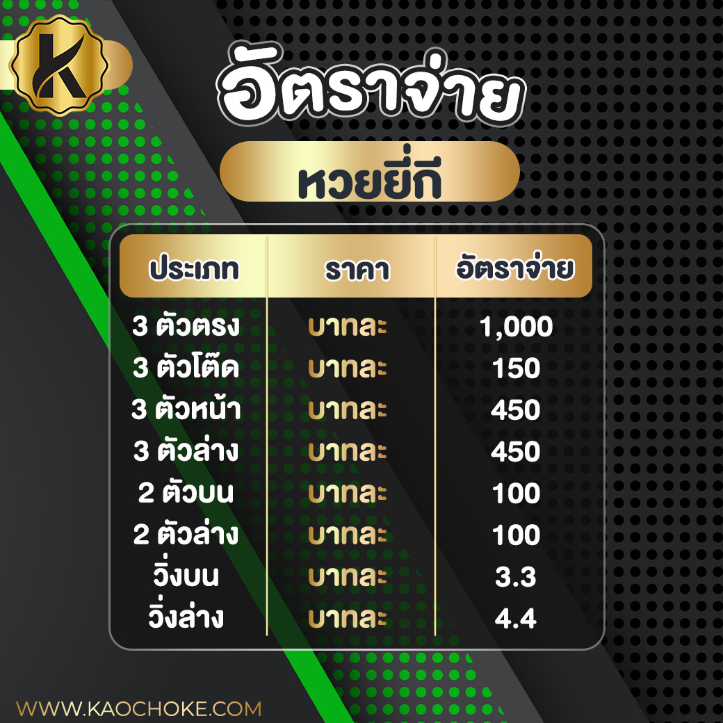 ยินดีต้อนรับสู่หวยออนไลน์ เพื่อให้ท่านทราบถึงสิทธิประโยชน์ของสมาชิกกรุณาอ่านข้อตกลงอย่างละเอียดก่อนที่จะลงทะเบียนสมัครเป็นสมาชิกและใช้บริการ KAOCHOKE.COM เมื่อสมัครสมาชิกแล้วทางเว็บจะถือว่า สมาชิกได้อ่านและยอมรับ " นโยบายและเงื่อนไขการให้บริการของเว็บไซต์"